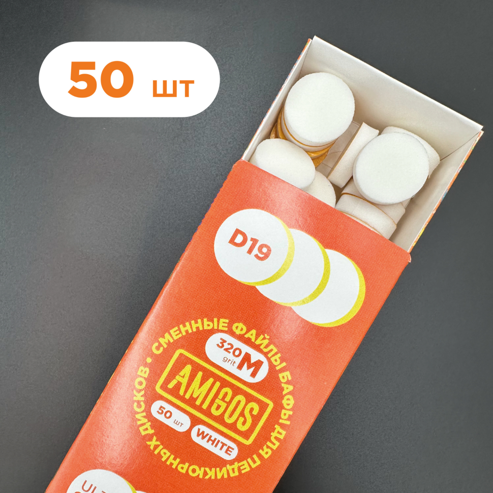 AMIGOS Баф полировачный для педикюрного диска D19, 320 грит (50 шт)