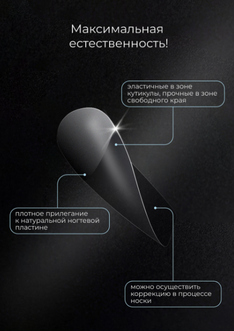 Типсы легко поддаются опилу, позволяют придать ногтям любую желаемую форму. Вам обеспечены исключительно приятные эмоции и превосходный результат!