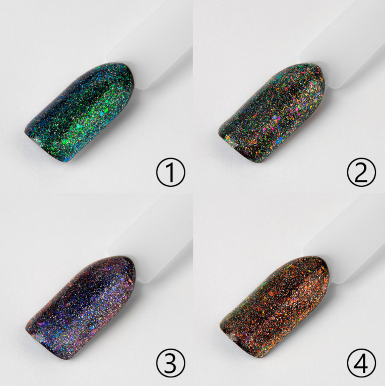 Палитра новой линейки представлена шестью роскошными серебряными оттенками с элементами цветной потали, которые можно ярко комбинировать с простыми однотонными гель-лаками.
