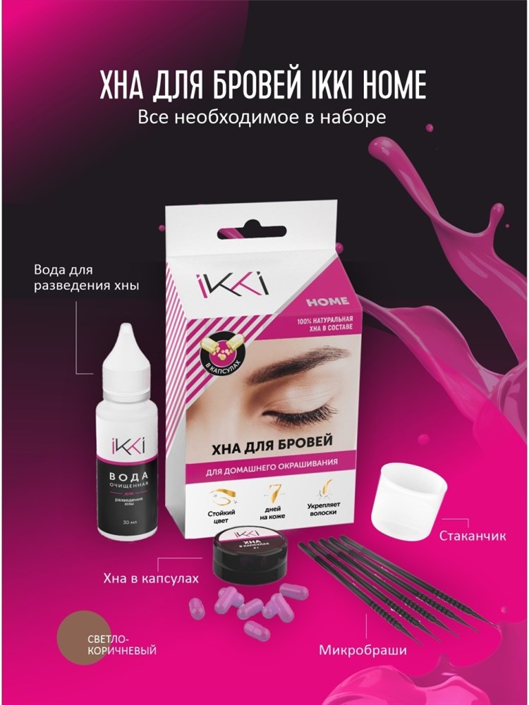 Набор для домашнего окрашивания бровей Хной IKKI Home, светло-коричневый