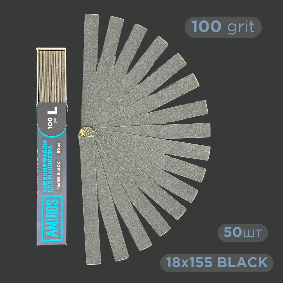 Сменные файлы AMIGOS L 18*155 мм 100 грит, black 50 шт