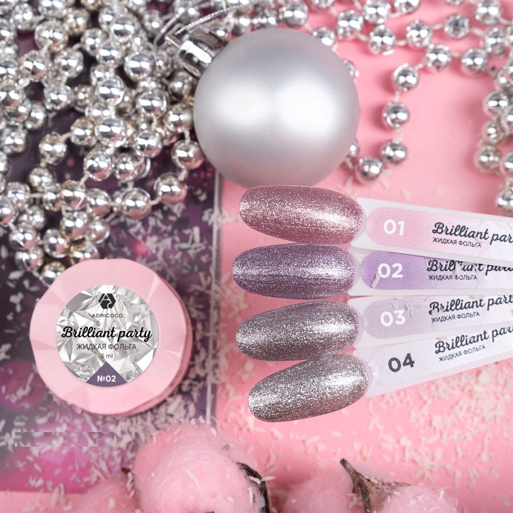 Жидкая фольга ADRICOCO «Brilliant Party» – это смесь блесток в прозрачной базе, которые придают ногтям сияющее покрытие.